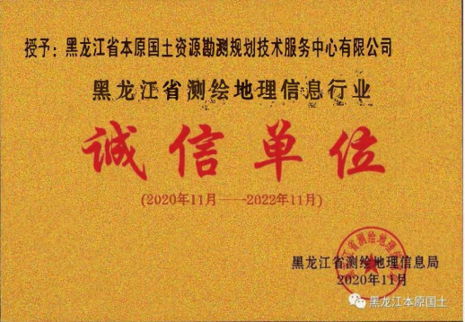 5.黑龙江省测绘行业诚信单位。