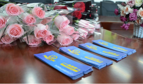 活动中,学院领导班子代表学院及工会向全体女教师们送上精心准备的鲜花和电影券等礼品。