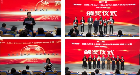颁奖仪式由人文地理与城乡规划系主任张慧副教授主持,黑龙江省城市规划勘测设计研究院刘东亮副院长宣读晋级奖获奖团队名单,杜国明院长为6支获得晋级奖的团队颁发证书及奖品。黑龙江国土空间规划研究院空间规划所所长李宏宣读本次竞赛国家级二等奖团队名单,超图集团勘测规划设计院经理刘晓飞为获得国家级二等奖的8支团队颁发证书及奖品并拍照留念。