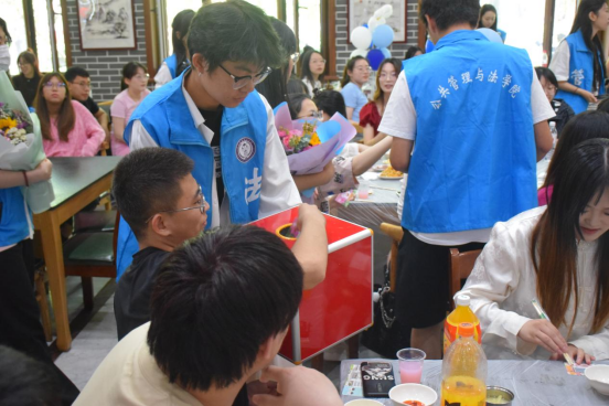 “感谢恩师”环节将活动推向了另一个高潮。毕业生代表向辛勤耕耘的老师们献上鲜花与深深的敬意,同时,一份特别定制的毕业纪念蛋糕在师生们的共同见证下被缓缓切开,象征着毕业生们即将开启的甜蜜新生活。