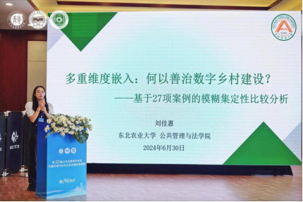 刘佳惠同学参加“分论坛四:乡村治理现代化”,并做了《多重维度嵌入:何以善治数字乡村建设——基于27项案例的模糊集定性比较分析》的报告分享。研究基于社会嵌入理论,从技术、政治、认知与关系嵌入四大维度切入,运用模糊集定性比较分析(fsQCA)方法,对中国27个省(市、区)数字乡村建设成果的影响因素与发展路径进行系统分析,旨在为乡村振兴进程中数字乡村建设提供理论支撑和政策启迪。
