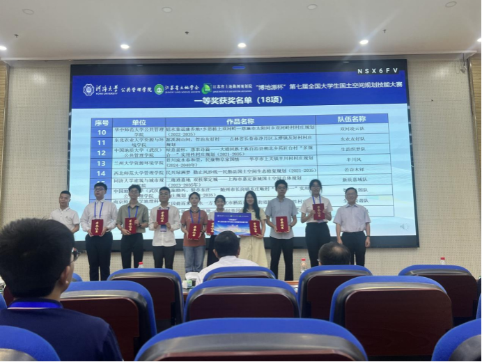 本次大赛分为初赛和决赛,初赛共167支队伍参加,经过初赛评选,共有63支队伍进入决赛。管法学院教师杜国明、龚河阳和资源与环境学院教师赵昕悦三位老师指导本科生强泳砚、颜廷婷、杨泽宁、张宇诺完成的作品《潺溪润山间,智治友好村——吉林省长春市净月区玉潭镇友好村村庄规划》在本次大赛中荣获一等奖。