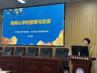 会前,为弘扬教育家精神,加强思想政治建设,涵养高尚师德师风,学院邀请了中共哈尔滨市委党校社会和公共管理教研部赵玉晖为全体教职工进行主题为《阳明心学的智慧与启发》的培训,系统地讲解了王阳明的格物致知、知行合一、致良知等思想。启发了教师们对自身行为的规范性及自我价值的实现路径的思考。