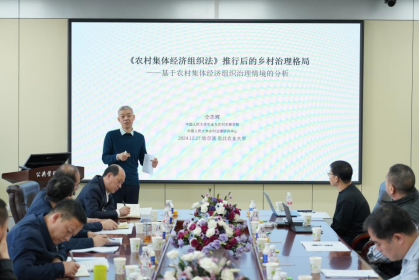 中国人民大学农业与农村发展学院教授、中国人民大学吴玉章特聘教授、乡村治理研究中心主任仝志辉以“《农村集体经济组织法》推行后的乡村治理格局”为题,从四个方面对集体经济组织法施行后的治理情景变化进行阐述,并以典型村庄为例提出了治理结构的完善思路。