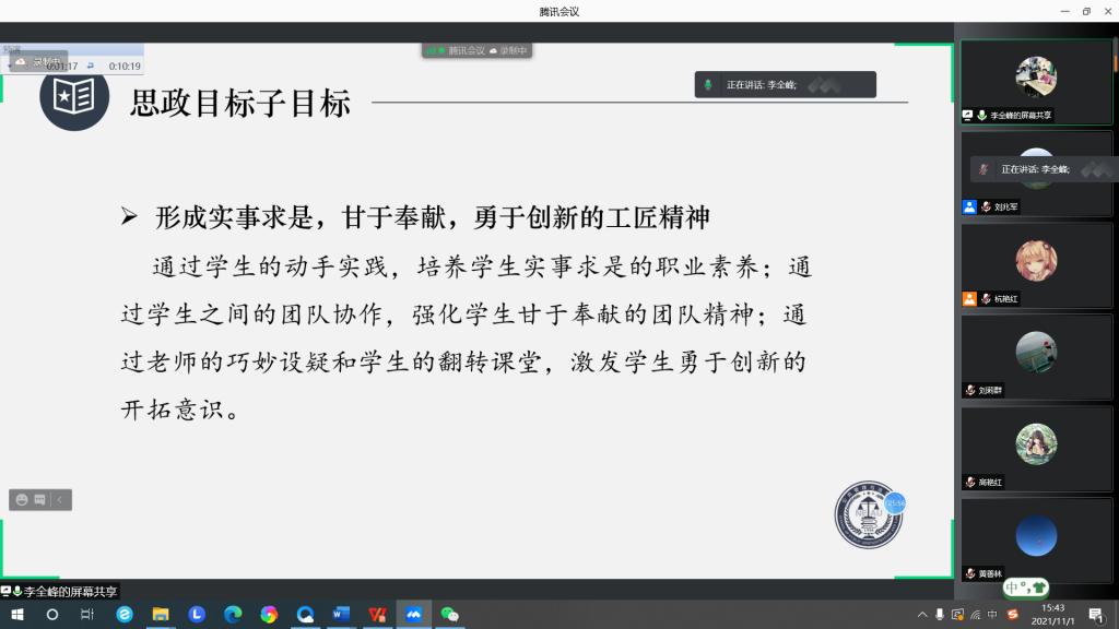 为贯彻落实我校课程思政建设工作部署,持续推动我院课程思政建设走深走实,充分展现课程思政建设阶段成效,不断强化课程思政在人才培养中的重要作用,11月1日13点30分,tyc5997太阳集团专门召开课程思政建设项目线上交流会。学院党委书记闫清波、院长杜国明,副书记马涛、副院长程镝、刘兆军和全体课程思政项目团队共同参加,部分教师参会观摩。会议由刘兆军主持。
