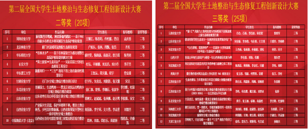 在本次大赛中,我院学子以“全域土地综合整治”为方向进行思考创作,参赛作品获得专家一致好评。在此项赛事上取得突出的成绩,充分体现了土工学子理论基础深厚,实验能力扎实,团队精神良好的优秀品质,也是学院实践育人、科研育人的优秀成果。获奖名单