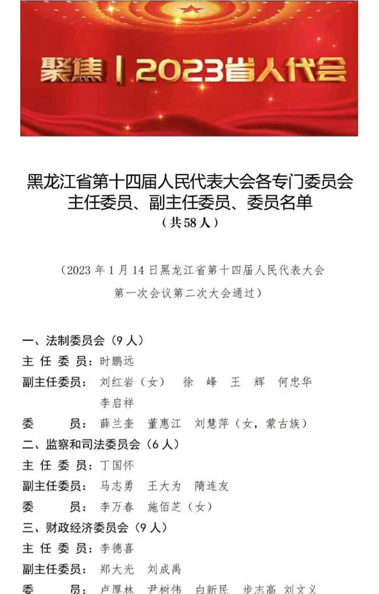 黑龙江省第十四届人民代表大会于2023年1月12日至16日在哈尔滨召开,我院刘慧萍教授当选为省人大代表出席会议,并经大会选举成为我省新一届人民代表大会法制委员会委员。