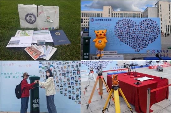 管法学院创意定制“我爱管法”主题精美迎新礼包,突出呈现学校和学院标志性建筑及人文关怀,激发新生强农兴农、知农爱农的情怀担当。精心设计由全体新生笑脸照片集结而成的签名拍照墙,全方位营造浓厚的迎新氛围。充分利用空间布局,在迎新场地摆放专属“时光信箱”,新生纷纷将提前写好的信件投入信箱,寄给四年后的自己。并在迎新现场为新生展示法袍、无人机、全站仪等设备,供新生提前了解自己所学专业。