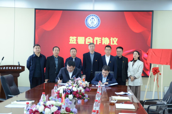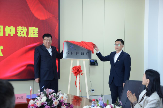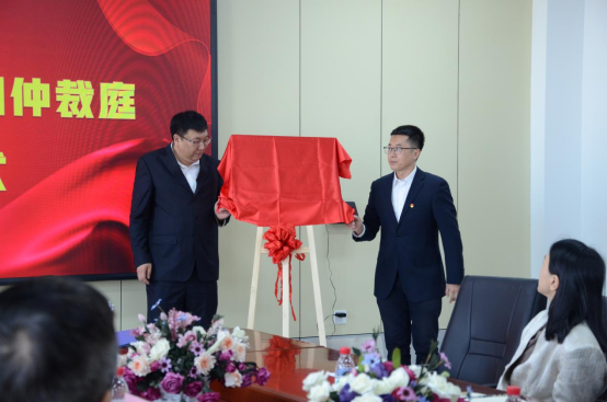 在签约环节,杜国明和孙兵共同签署了《tyc5997太阳集团与绥化仲裁委合作共建协议》。在揭牌环节,马海鹍和孙兵为“实践教学基地”和“校园仲裁庭”揭牌。