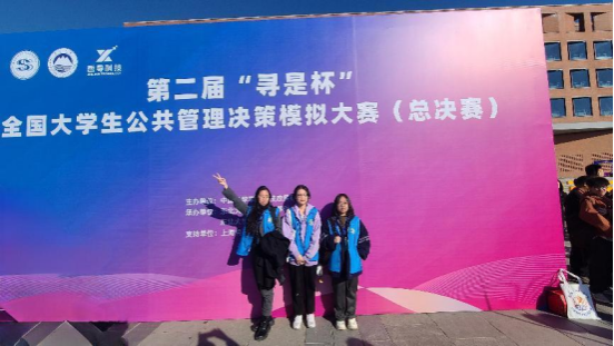 2023年10月27日至29日,由张雨萌、陈佳和冯韵锜三名同学组成的“勒石燕然”团队,代表我院参加了在辽宁沈阳举行的第二届“寻是杯”全国大学生公共管理决策模拟大赛(总决赛)。在行政管理系的才正和刘韬两位老师的精心指导下,在学院领导的大力支持和密切关注下,该团队表现卓越,荣获了本次全国总决赛的二等奖。这是我院行政管理专业学生首次在该赛事中取得如此优异的成绩。