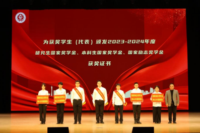 汪志君为获2023-2024学年度研究生国家奖学金、本科生国家奖学金、国家励志奖学金学生(代表)颁奖。