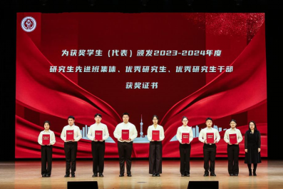 冯瑶瑶为获2023-2024学年度研究生先进班集体、优秀研究生、优秀研究生干部学生(代表)颁奖。