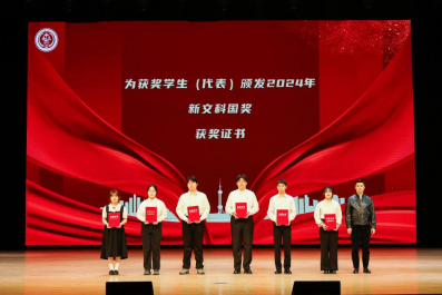 吕嘉昌为获2024年国家级新文科项目学生(代表)颁奖。