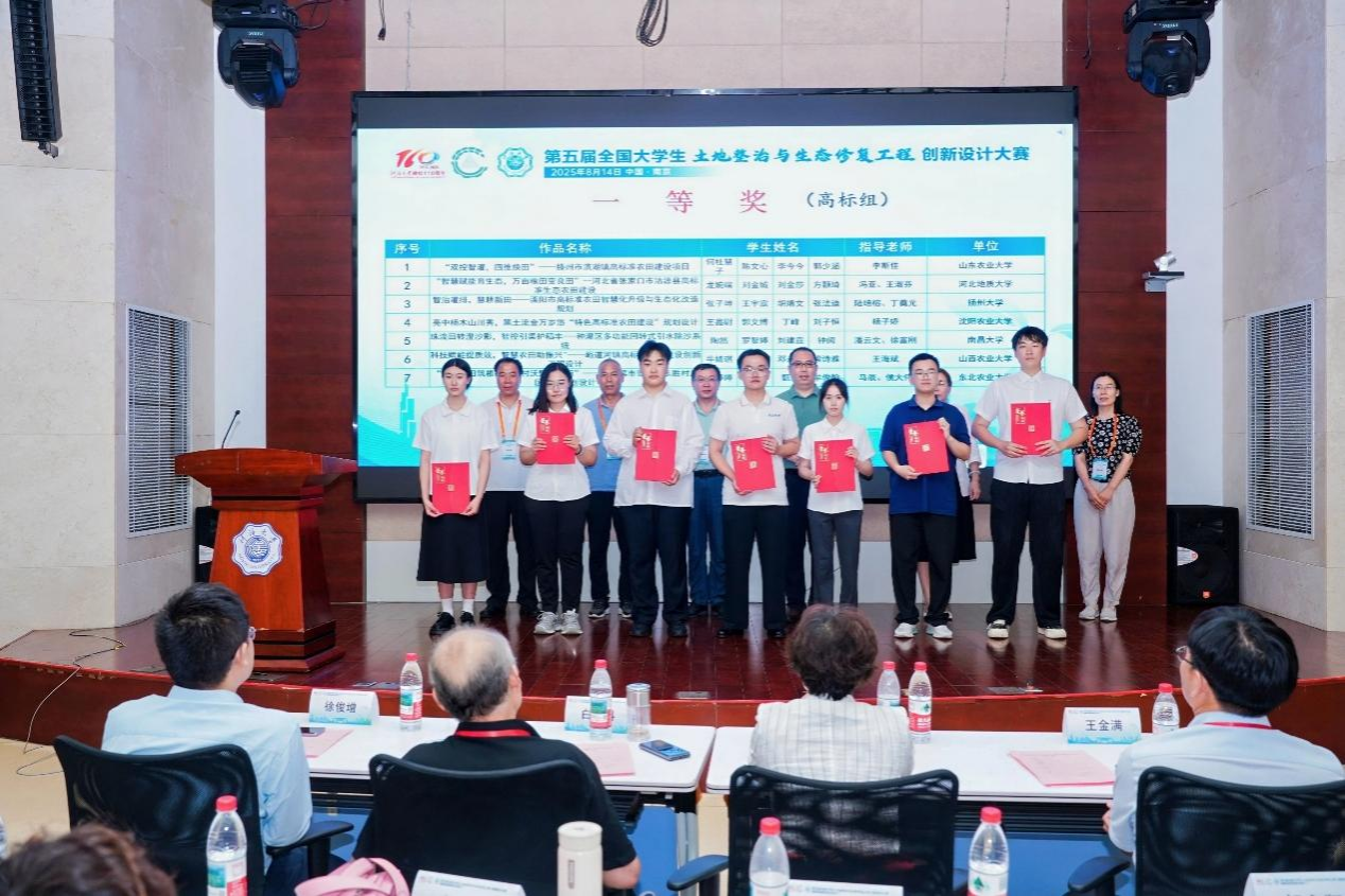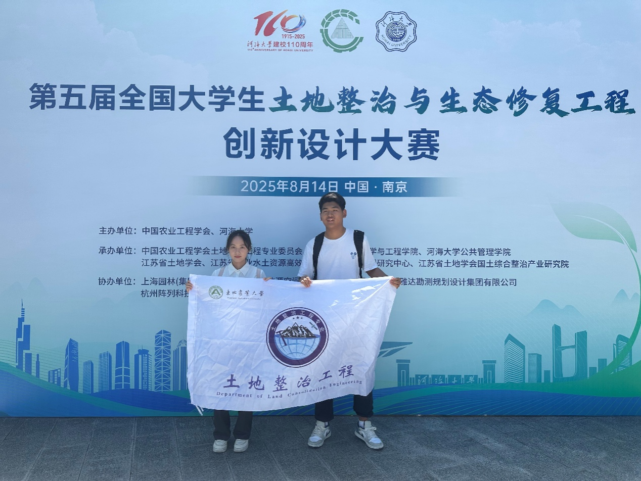 2025年8月14日,第五届全国大学生土地整治与生态修复工程创新设计大赛在河海大学成功举办,tyc5997太阳集团土地整治工程专业本科生翁婷婷、孙林楠、甄鑫、牟俊翰(指导教师:马辰、侯大伟)完成的作品《“东胜良田筑根基,乡村沃野启新篇”——哈尔滨市香坊区东胜村片区农田规划设计》,经过激烈角逐,最终斩获一等奖。