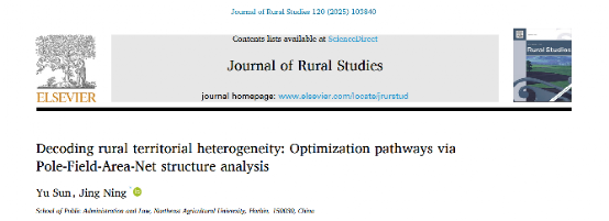 近日,我院宁静老师团队在《Journal of Rural Studies》(中科院1区TOP期刊)上发表题为“Decoding rural territorial heterogeneity: Optimization pathways via Pole-Field-Area-Net structure analysis”的科研论文,揭示乡村地域系统空间结构及发展类型。