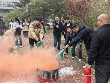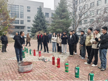 吴智衡主持开展消防疏散演练培训。培训伊始,吴智衡先就消防安全常识进行理论讲解,帮助师生夯实知识基础;随后组织全体参与人员开展消防疏散演练;最后在研究生楼后广场进行灭火器等消防器具的实操培训,确保每位参与者都能掌握正确使用方法。
