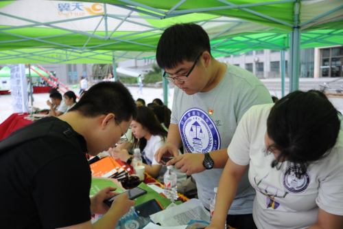 学院在迎新现场展出了测量仪器、法律专业书籍、法官袍、律师袍等各类专业特色展品,方便学生了解专业特色。为简化报到流程,为全院新生准备了印有专业、姓名的入学材料袋,内附学生校园卡、日程表、校历、防骗指南及签字笔、明信片等入学纪念品,学生在线上报到完成后领取入学材料袋即可完成报到流程。