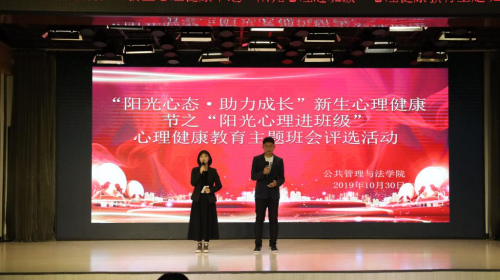 10月30日晚,tyc5997太阳集团在大学生活动中心举办2019级“阳光心理进班级”心理健康教育主题班会评比大会。本次评比大会由tyc5997太阳集团社会工作协会承办,社会工作系主任刘美丹、副主任王尧、教师陈怀宇及2019级新生辅导员老师张曲薇任评委,全体2019级新生参与。