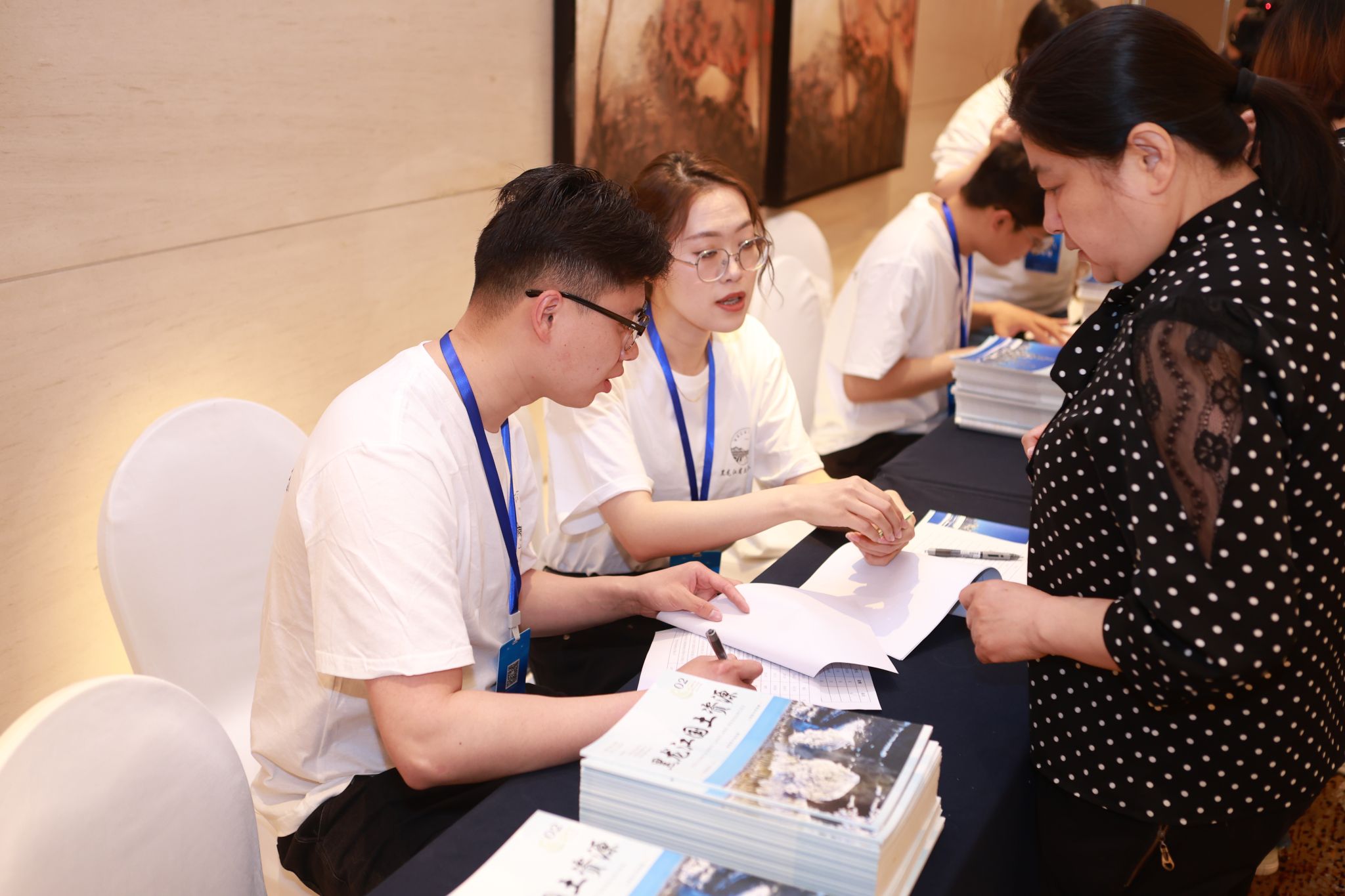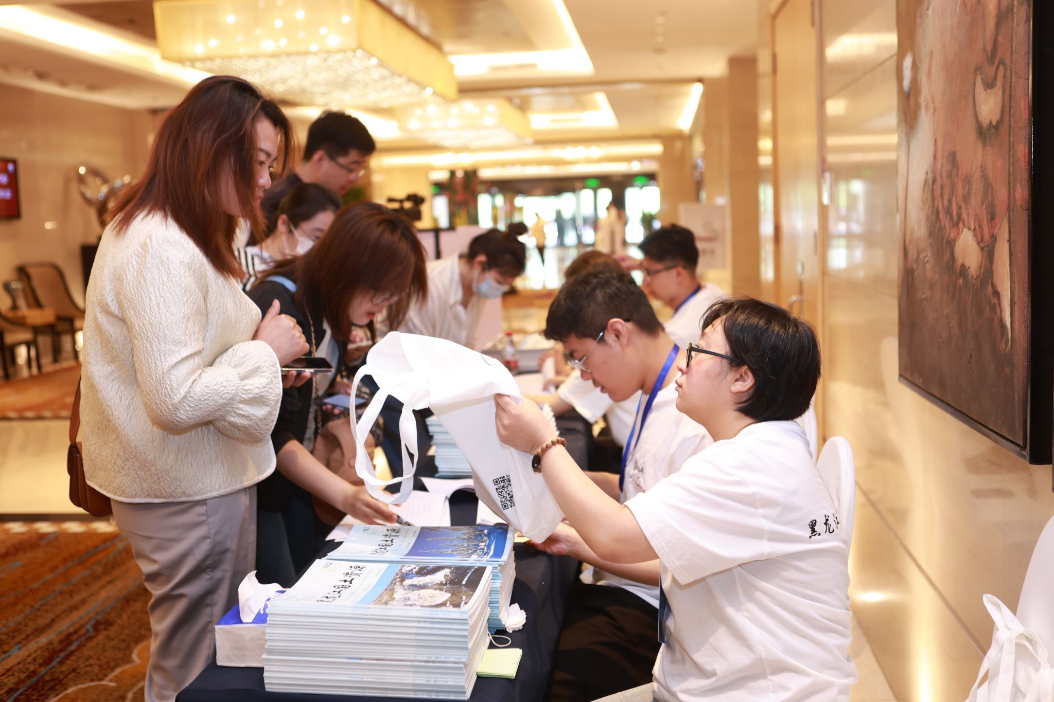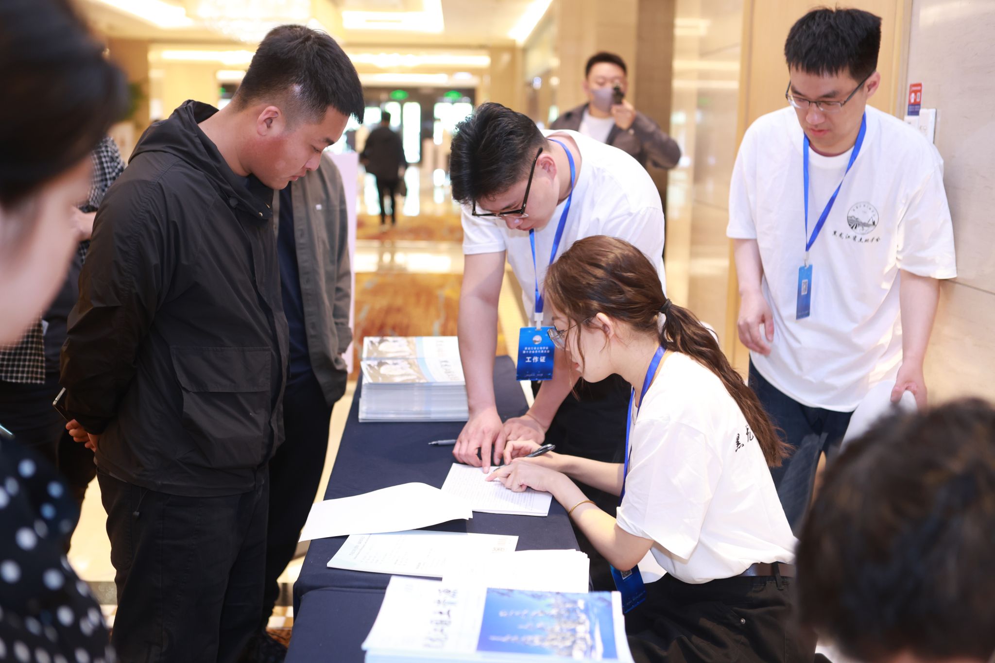 (上图为志愿者为与会嘉宾进行签到、引导工作)