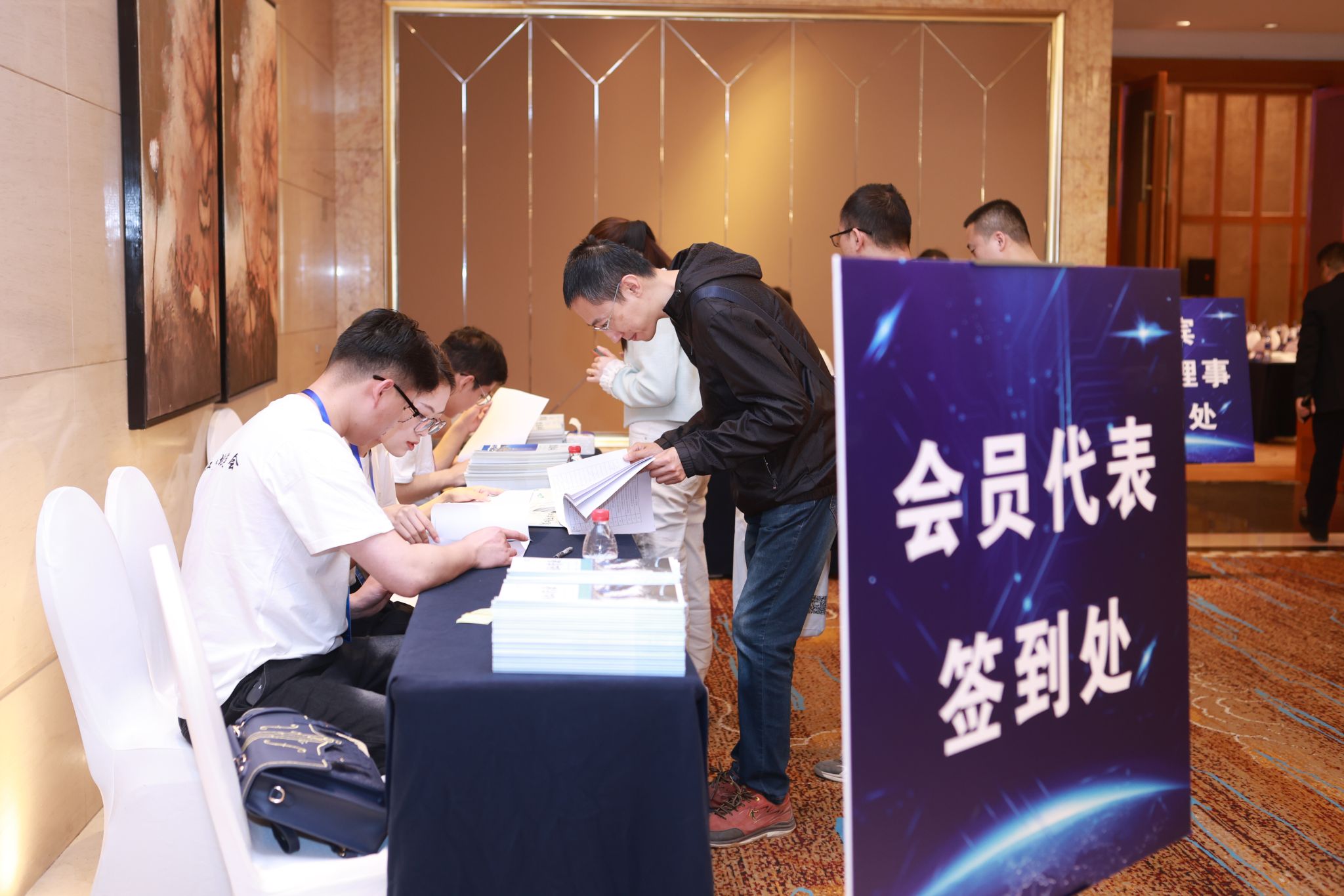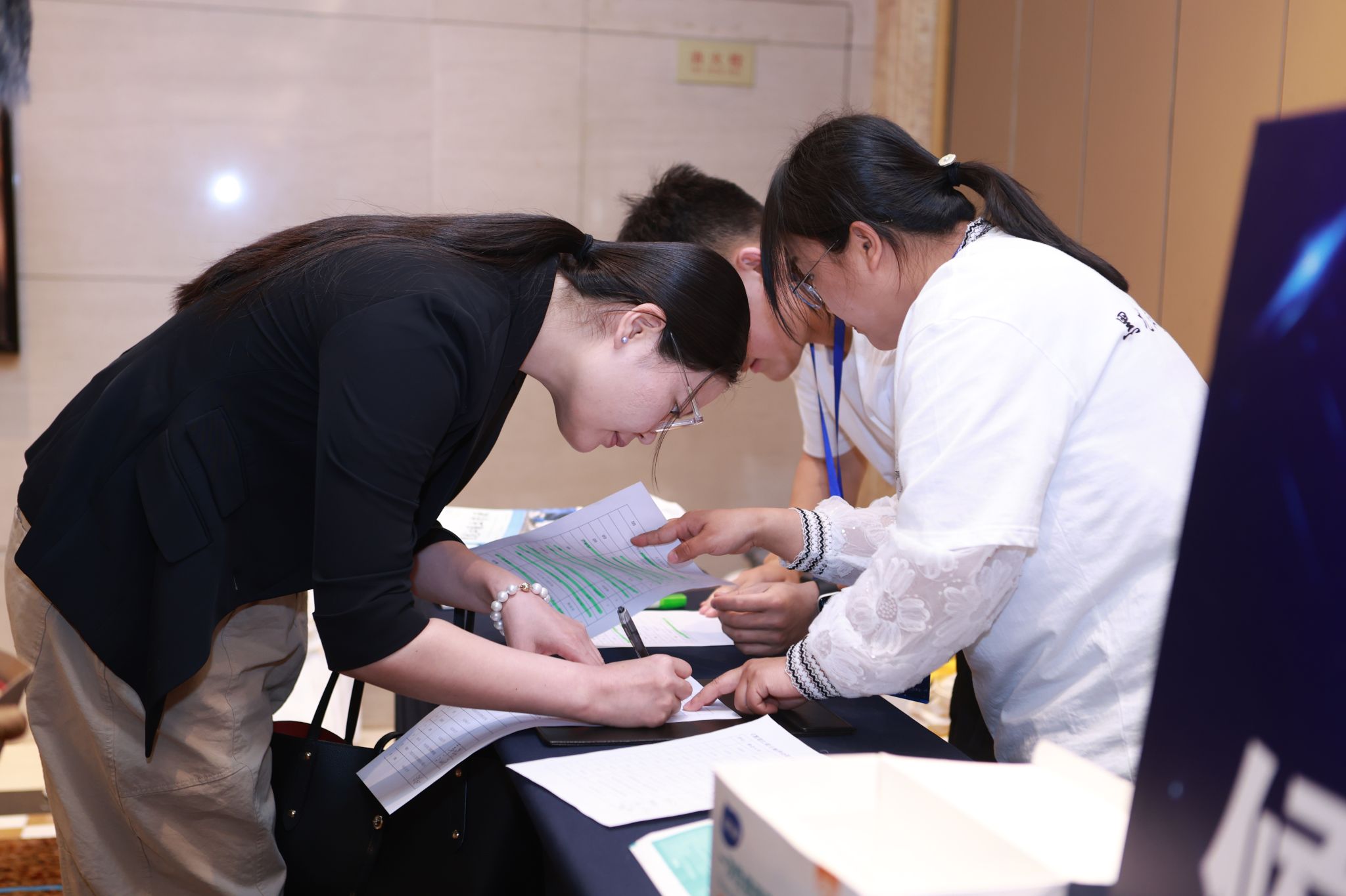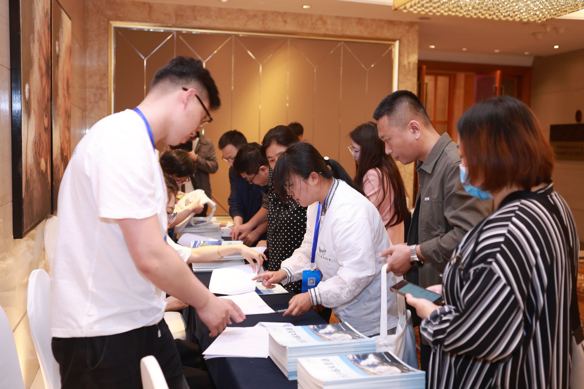 (上图为志愿者为与会嘉宾进行签到、引导工作)