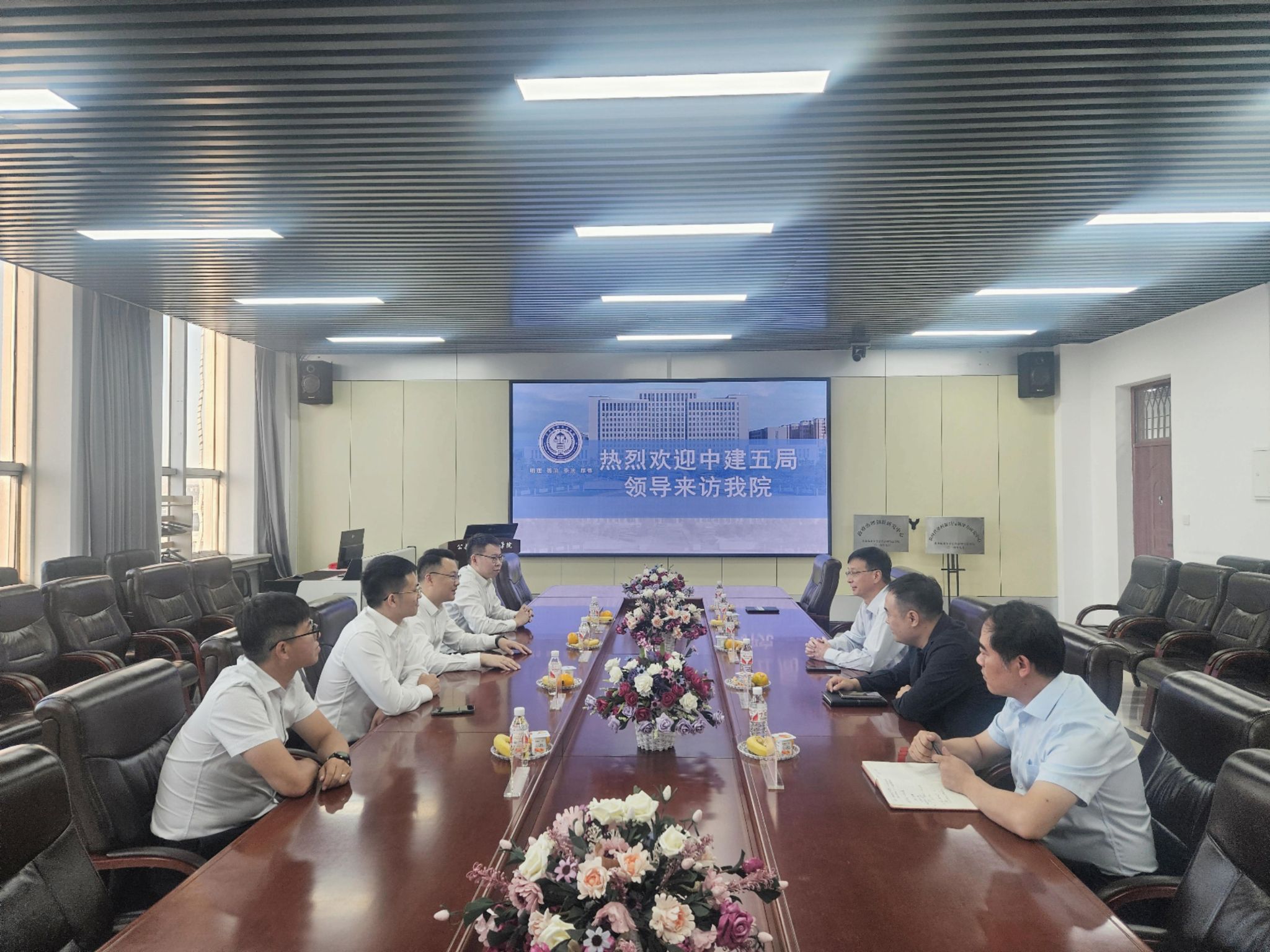 为进一步落实高质量充分就业工作要求,开拓优质企业资源与岗位,全面深化校企合作,合力搭建育人平台,更好地推动学院毕业生就业工作,9月11日,中建五局有限公司到tyc5997太阳集团开展校企合作对接洽谈。中建五局总部招聘经理冯攀、一公司企划人力部经理纪凯、招聘经理盛钰、项目办公室主任王越鹏参加本次座谈会。tyc5997太阳集团党委书记闫清波、党委副书记马涛、副院长程镝、副院长黄善林、学工办主任彭永涛参加座谈。座谈交流会在成栋楼1104会议室召开,会议由马涛主持。
