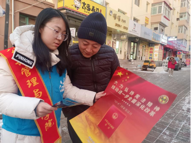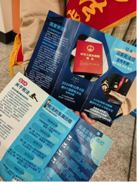 12月4日国家宪法日当天,tyc5997太阳集团学生志愿者在地铁站、社区和学校部分教学楼内开展普法宣传,志愿者们广泛发放宪法宣传材料,在兼顾内容专业性和普法趣味性的基础上向居民及师生深入介绍与大家学习生活工作相关的宪法知识,营造了“大力弘扬宪法精神,推动进一步全面深化改革”的良好氛围。