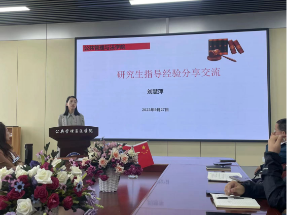 优秀研究生导师代表刘慧萍分享了自己指导研究生的经验。刘慧萍指出:一名合格的研究生导师应时刻怀有“敬畏心、责任心、平常心”,用“真情、热情、浓情”感染学生、带动学生,在学生培养过程中要常备“持续力、承受力、引领力”,用心、用情、用力做好研究生培养工作。